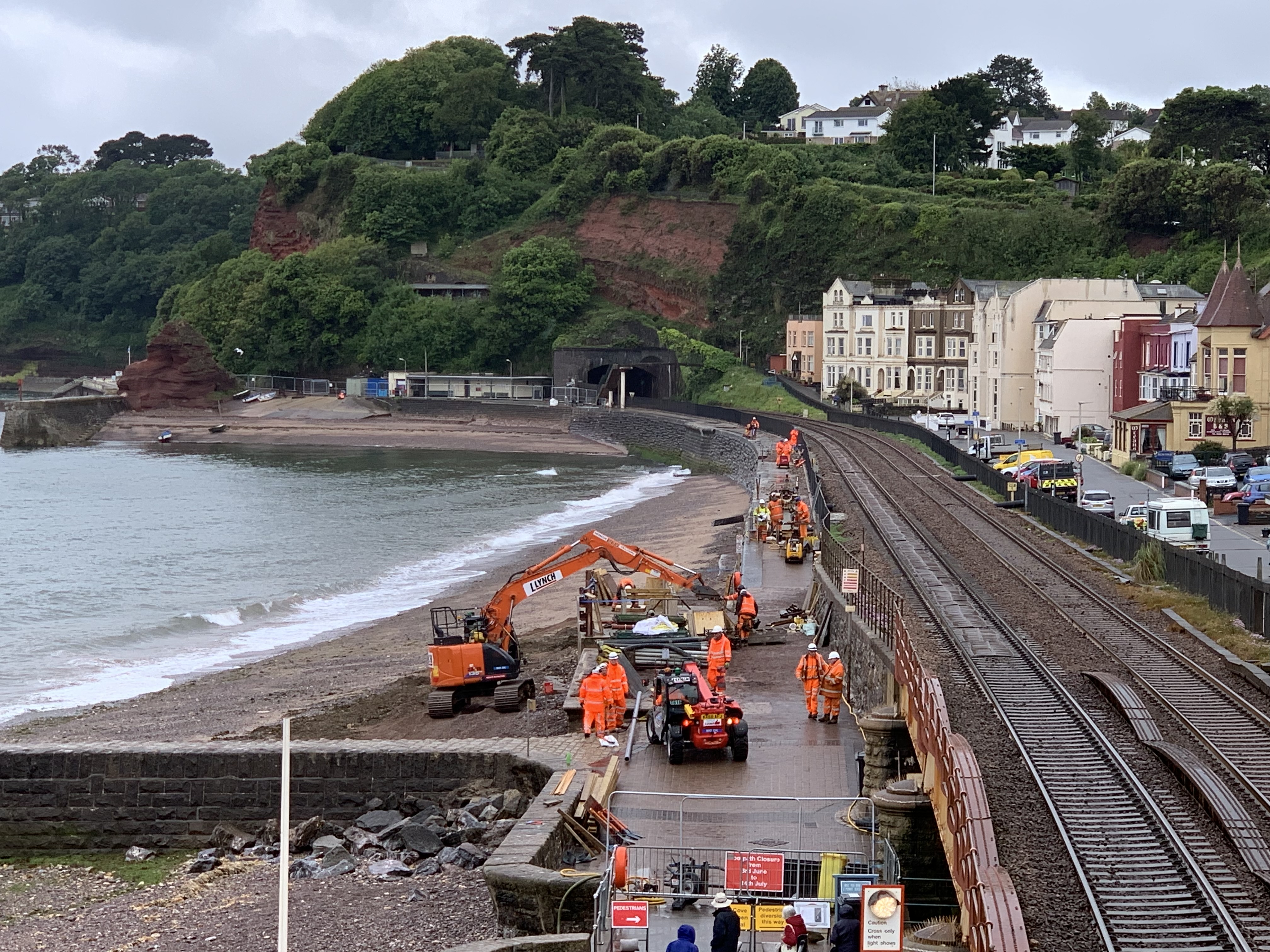 The whole line needs to be carefully inspected. The weakening has probably affected the whole sea wall, and may very well lead to further collapses in time. As soon as the line re-opens, the Politicians will totally forget about any other by-pass route. But I am impressed with the effort and dedication being shown to get this line re-opened.