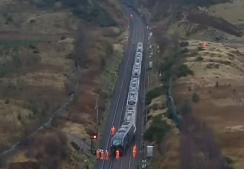 ‘It has also been confirmed by Network Rail that a suspected landslip took place on the track prior to the derailment, with an investigation now starting into the exact cause by the Rail Accident Investigation Branch. The Office of Rail and Road also dispatched an inspector to the site.’