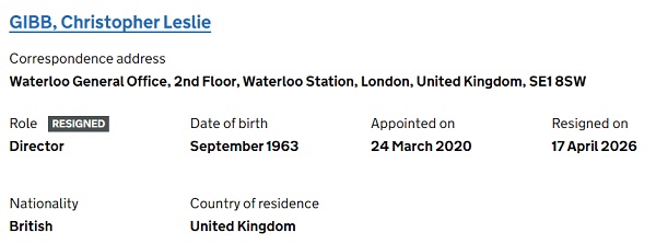Companies House confirms departure of Chris Gibb